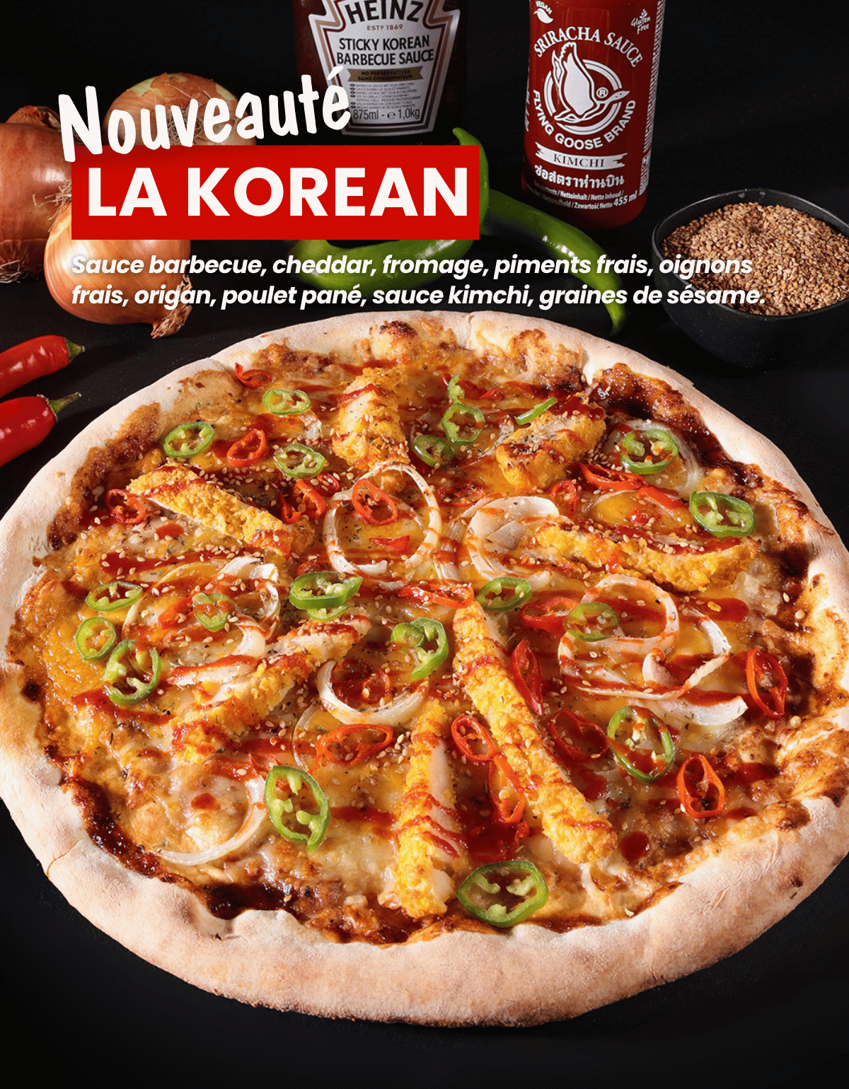 *Pizza spéciale = Alpine, Anacapri, Auvergnate, Buffalo, Brie, Caesar, Formaggi, Grecque, Indienne, Kentucy, Libanaise, Londonienne, Miel, Napoli, Niçoise, Norvégienne, Romaine, Supreme, Texane, Tunisienne, USA, Viking