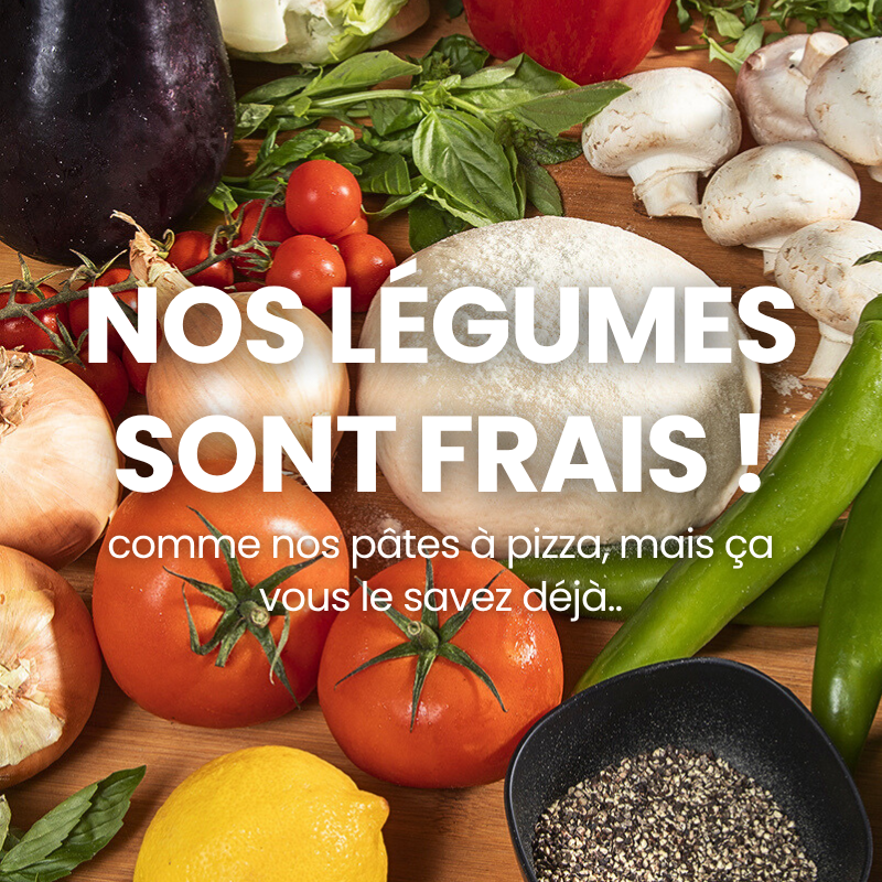La pâte traditionnelle, jamais congelée, est pétrie chaque jour dans chacun de nos magasins. Nos pizzas sont préparées sous vos yeux par des pizzaiolos professionnels, véritables garants de qualité et de savoir-faire. Les légumes sont soigneusement sélectionnés pour leur fraîcheur, tout comme nos fromages, rigoureusement choisis et exclusivement frais.